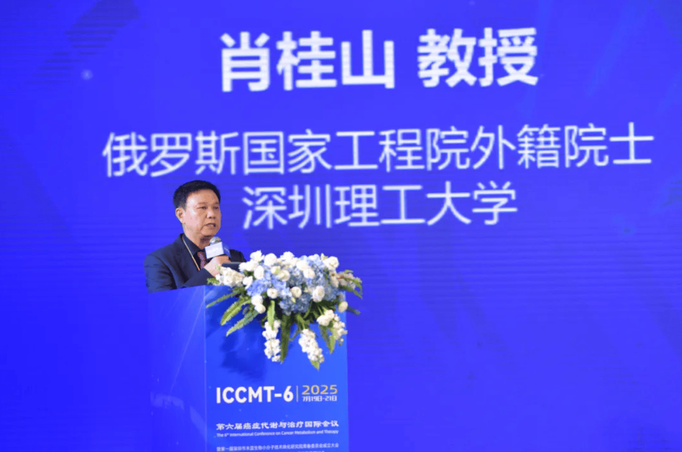 俄罗斯工程院外籍院士、深圳理工大学、深圳未蓝生物小分子技术转化研究院(筹)肖桂山院士进行致辞。他诚挚欢迎与会嘉宾,并感谢大家对癌症防治事业的支持,并表示国际癌症代谢与治疗会议已举办六届,规模逐年扩大,影响力持续提升,累计参会规模超千人。他希望通过这个会议平台,能够激发出更多创新思维,催生更多合作项目,推动癌症代谢与治疗领域迈向新的高度,推动癌症防治事业的发展。