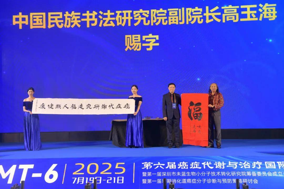 现场,中国民族书法研究院副院长高玉海赐字“癌症代谢研究造福人类健康”。