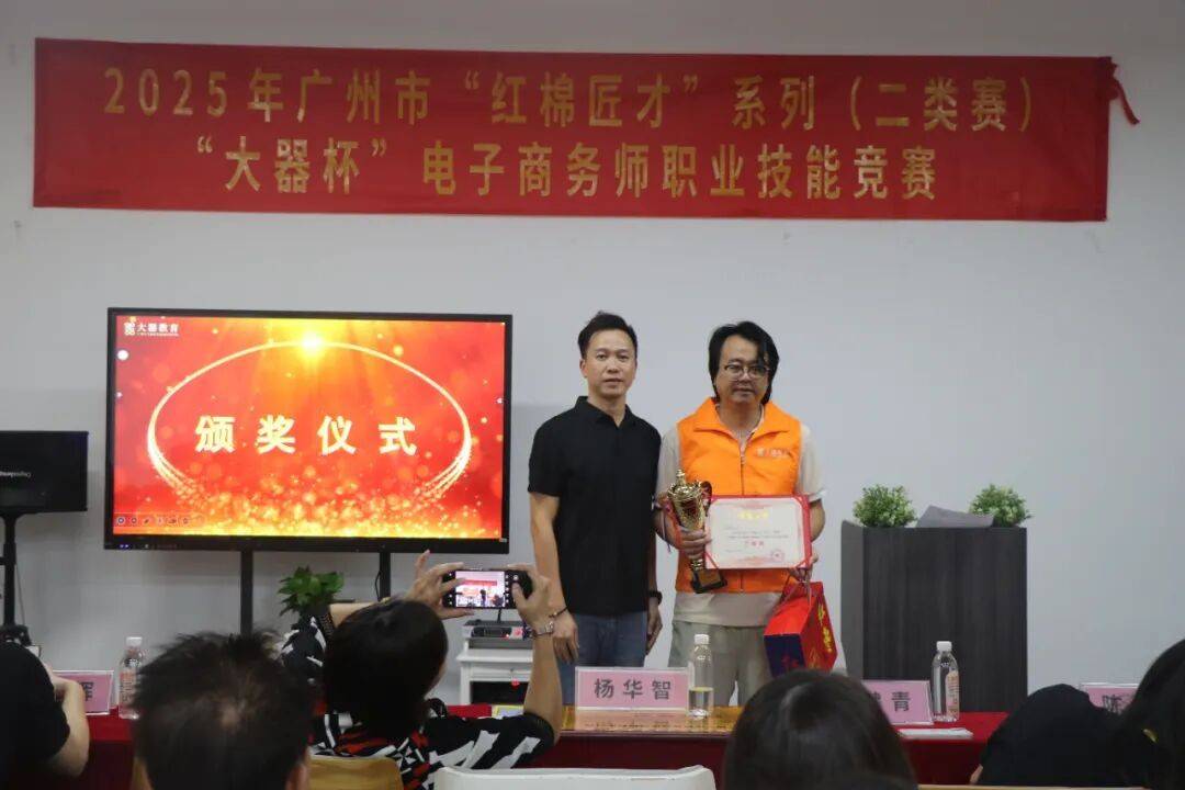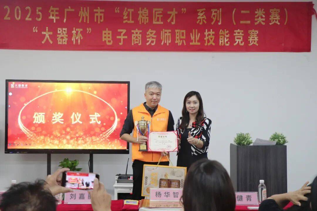 广州大洋教育科技股份有限公司负责人杨华智为获得电子商务师(网商)竞赛三等奖的考生颁奖。