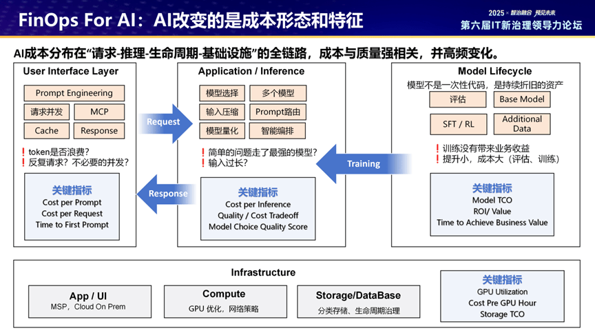 2.0阶段则以ROI导向,转向精细化成本治理,搭建“数据层-能力层-治理层”架构,实现成本可见、核算、洞察、优化全流程,核心方案包括计算资源在离线混部、存储AutoPL弹性调度、对象存储冷热分层等。