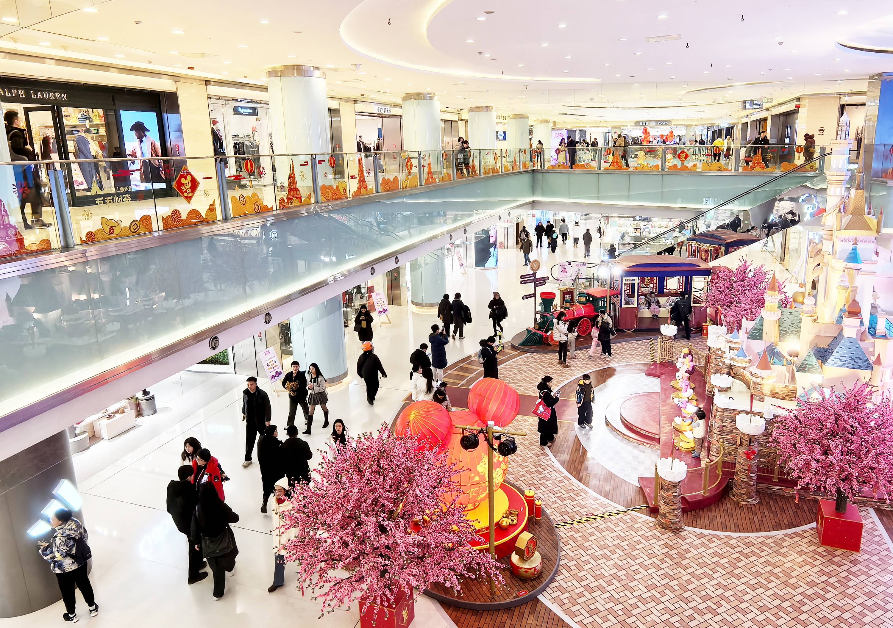 自元旦前就备受粉丝关注的东方新天地“奇妙暖冬 全新出发” 香港迪士尼20周年主题展览,此时也焕新变装,邀请大家一起奇妙年年!大家可以在奇妙梦想城堡前,与换上新春装扮的米奇米妮、唐老鸭黛丝装置合影、拜年。以香港迪士尼乐园的怀旧蒸汽火车为设计灵感的小火车与超大米奇红灯笼,格外吸引吸睛。倒挂的“福”字与俏皮的米奇灯笼相映成趣。漫步在商场中,各种融入马年春节元素的迪士尼装饰随处可见,和着欢快的节日乐曲,让人瞬间沉浸在浓浓的新春氛围当中。