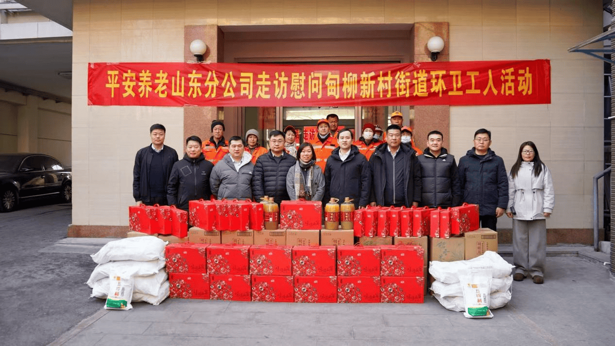 在山东济南甸柳新村街道,环卫工人在寒风中坚守岗位。平安养老险山东分公司的志愿者为他们送上米、面、油等慰问品,并致以新春祝福。一句句温暖的问候,让一线城市守护者在辛勤工作之余感受到节日的温情。