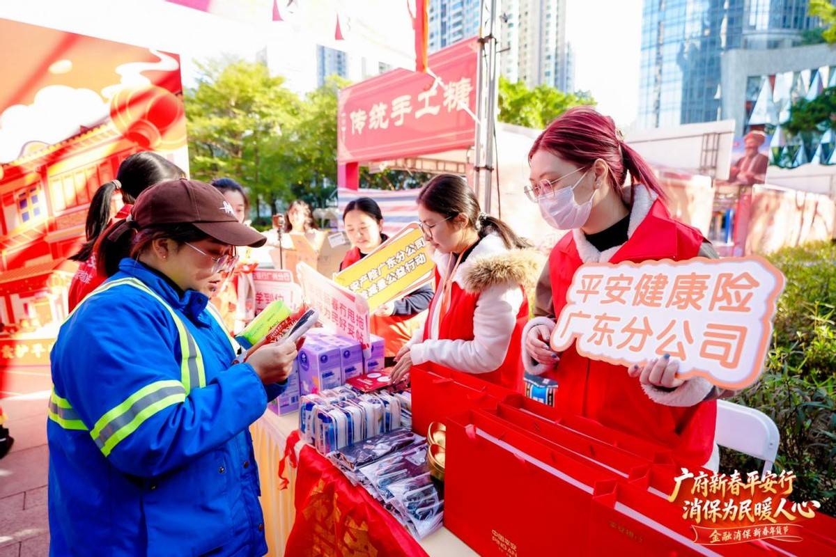 为深入践行金融工作的政治性与人民性,切实提升广大群众金融素养和风险防范意识,2月3日,平安健康险广东分公司以“广府新春平安行 消保为民暖人心”为主题,联合辖区派出所开展了一场具有广府文化特色的创新金融为民活动,以实际行动感谢为城市运转辛勤付出的新市民劳动者们。